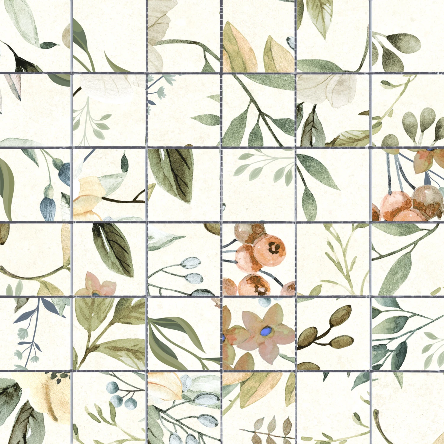 AUTUMN: Immerse yourself in the enchanting beauty of autumn with our captivating floral mosaic tile, showcasing the rich, warm tones of the season