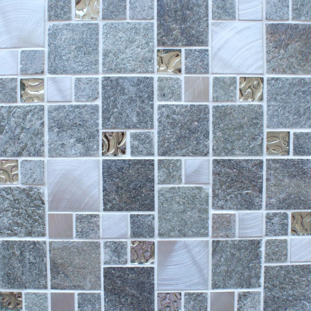 A beautiful mix of stone effect and metallic tile pieces, means this mosaic brings a combination of both class and elegance.