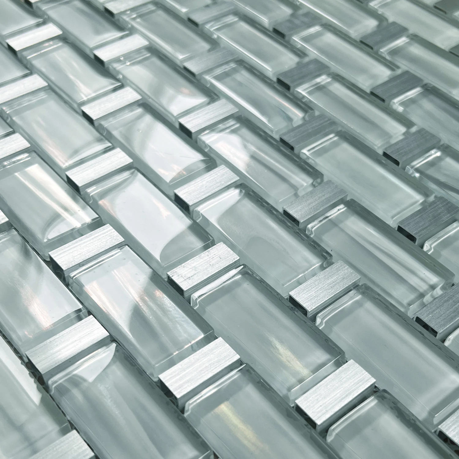 The enchanting Monsoon Pearl with it’s glamourous glass and metal finish is a new, fresh choice for your home. Clear and exquisite this mosaic with it’s pearly white tones is sure to leave a lasting impression wherever it is displayed.
