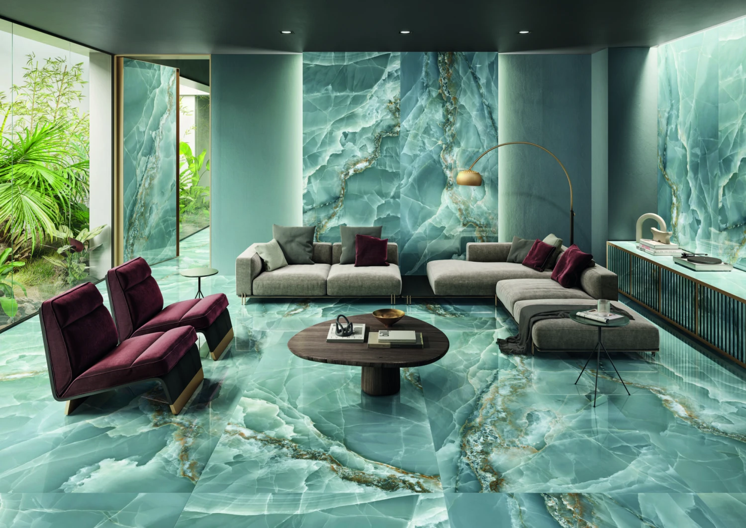 Transform your interiors into an oasis of tranquility with the stunning Green Onyx Porcelain Tiles, where the refreshing and revitalizing essence of green merges with the allure of opulent design. Elevate your surroundings with this exceptional tile, creating an ambiance that invigorates the soul and evokes a sense of natural splendor.