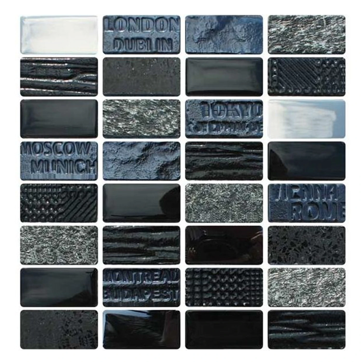 The Cities Mosaic is available in four colours. The combination of mixed materials and colours makes it very pleasing to the eye. Furthermore the imprint of city names make this mosaic truly unique.