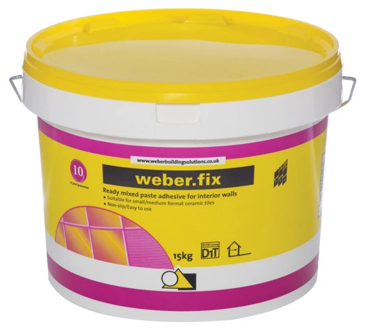 weber.fix. A ready-mixed ceramic wall tile adhesive for interior use.